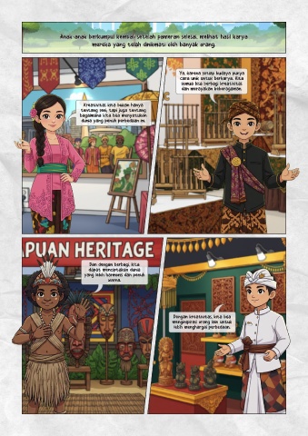 Anak-anak berkumpul kembali setelah pameran selesai, melihat hasil karya