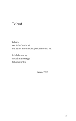 Tobat Tuhan, aku telah bertobat aku telah merasakan apakah neraka itu. Sebab kemarin, pacarku menangis di hadapanku. Sagan, 1958 15