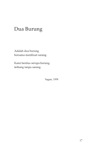 Dua Burung Adalah dua burung bersama membuat sarang. Kami berdua serupa burung terbang tanpa sarang. Sagan, 1958 17