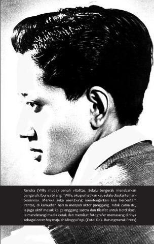 Rendra (Willy muda) penuh vitalitas. Selalu bergerak menebarkan