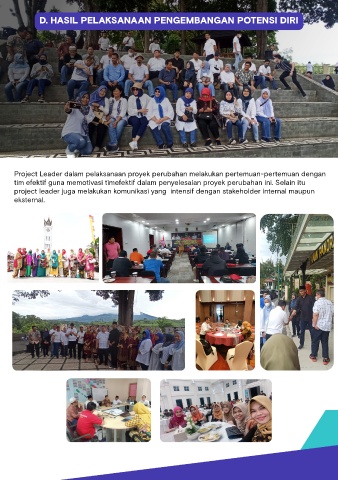 Project Leader dalam pelaksanaan proyek perubahan melakukan pertemuan-pertemuan dengan