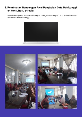 3. Pembuatan Rancangan Awal Pangkalan Data Bukittinggi, e- konsultasi, e-reviu Pembuatan aplikasi ini dilakukan dengan bekerja sama dengan Dinas Komunikasi dan Informatika Kota Bukittinggi.
