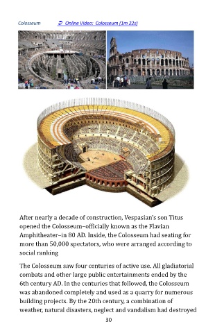 Amphitheater–in 80 AD. Inside, the Colosseum had seating for
