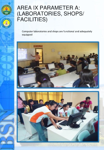 AREA IX PARAMETER A: (LABORATORIES, SHOPS/ FACILITIES) Computer laboratories and shops are functional and adequately equipped