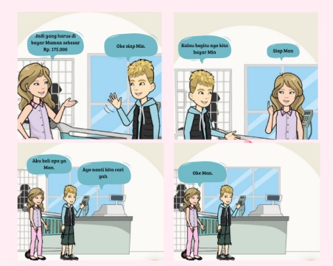 Jadi yang harus di bayar Maman sebesar Oke siap Min. Kalau begitu ayo kita Rp. 175.000 bayar Min Siap Man Aku beli apa ya Man. Ayo nanti kita cari yah Oke Man.