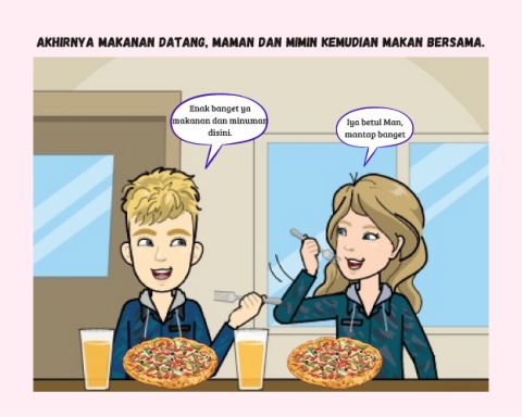 Akhirnya Makanan datang, maman dan mimin kemudian makan bersama. Enak banget ya makanan dan minuman Iya betul Man, disini. mantap banget
