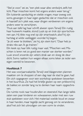 Thuis aan tafel lag haar schrift alweer open. Terwijl Elin rustig