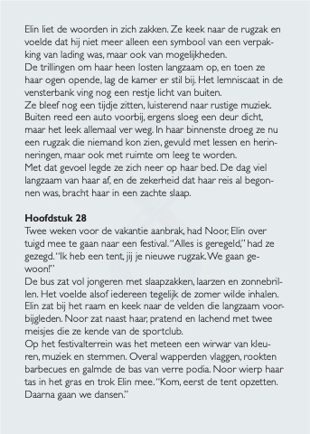 Elin liet de woorden in zich zakken. Ze keek naar de rugzak en