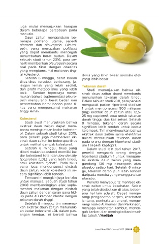 daun zaitun, kadar kolesterol ini se- gu, tekanan darah jauh lebih rendah