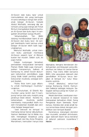 tu untuk membangun mushola,” warga Kampung Distrik Kamun-