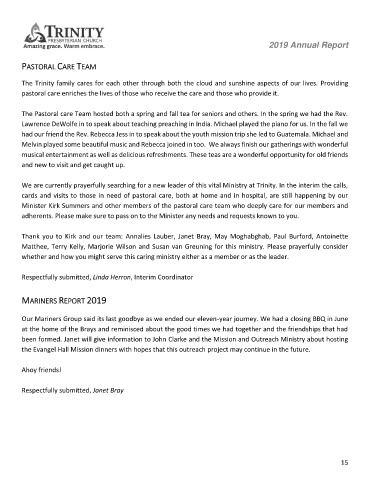 Minister Kirk Summers and other members of the pastoral care team who deeply care for our members and