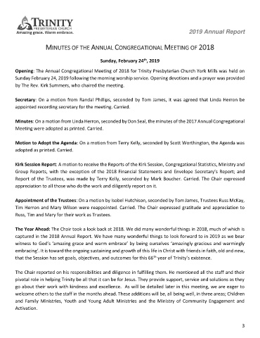 Opening: The Annual Congregational Meeting of 2018 for Trinity Presbyterian Church York Mills was held on