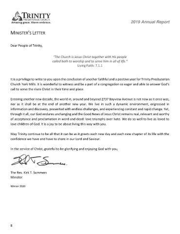 It is a privilege to write to you upon the conclusion of another faithful and a positive year for Trinity Presbyterian