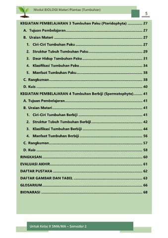 KEGIATAN PEMBELAJARAN 3 Tumbuhan Paku (Pteridophyta) ............... 27
