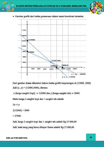 Dari gambar diatas diketahui bahwa kedua grafik berpotongan di (12000, 3000)