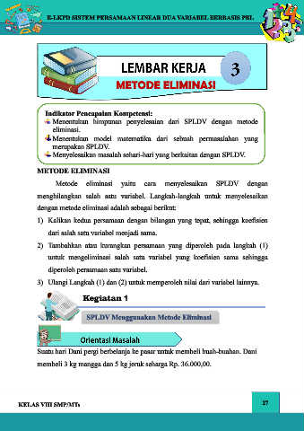 E-LKPD SISTEM PERSAMAAN LINEAR DUA VARIABEL BERBASIS PBL