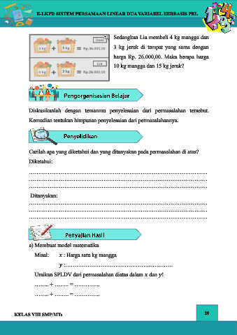 E-LKPD SISTEM PERSAMAAN LINEAR DUA VARIABEL BERBASIS PBL