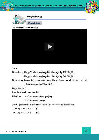 E-LKPD SISTEM PERSAMAAN LINEAR DUA VARIABEL BERBASIS PBL