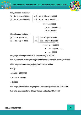 E-LKPD SISTEM PERSAMAAN LINEAR DUA VARIABEL BERBASIS PBL
