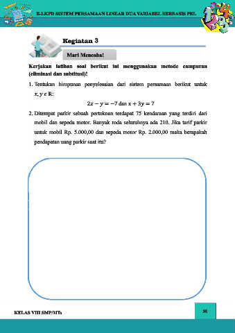 E-LKPD SISTEM PERSAMAAN LINEAR DUA VARIABEL BERBASIS PBL