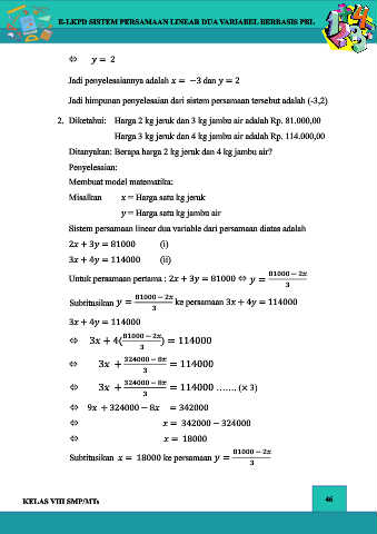 2.  Diketahui:   Harga 2 kg jeruk dan 3 kg jambu air adalah Rp. 81.000,00