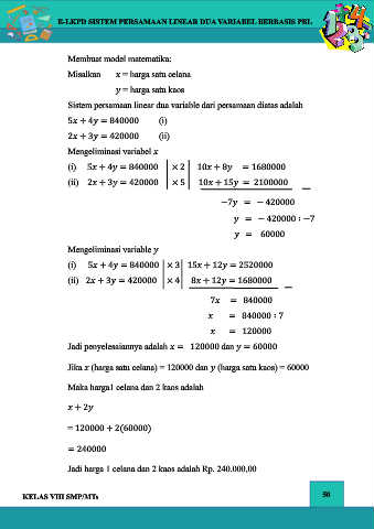E-LKPD SISTEM PERSAMAAN LINEAR DUA VARIABEL BERBASIS PBL