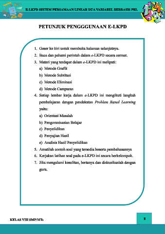 E-LKPD SISTEM PERSAMAAN LINEAR DUA VARIABEL BERBASIS PBL