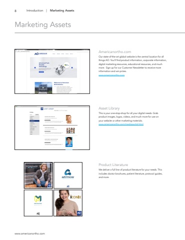 www.americanortho.com8MINI MASTER%u00aeBRACKETSAsset LibraryThis is your one-stop-shop for all your digital needs. Grab product images, logos, videos, and much more for use on your website or other marketing materials.www.americanortho.com/mediaportal.htmlMy Pro'le | Cancel This Order | Logout moppeneer@americanortho.comCatalog:(search)AO Internal ItemsSocial MediaAdhesivesBandsBracketsDisplay ArtCorporateElastomericsEventsFixed & FunctionalInstrumentsMini ScrewsTubesVideosWiresAll Lifestyle and product images contained in this library are trademarks of All Lifestyle and product images contained in this library are trademarks ofAmerican Orthodontics. All images must be used in conjunction with genuineAO products and in a manner that preserves the goodwill associated with the AO products and in a manner that preserves the goodwill associated with thetrademarks.Empower Clear Canvas ArtUse the following link to download this 'le:Download PhotoIf your image does not immediately download, right click on thelink and select \Master Series Canvas ArtUse the following link to download this 'le:Download PhotoIf your image does not immediately download, right click on thelink and select \Braces Made in the USA Canvas ArtUse the following link to download this 'le:Download PhotoIf your image does not immediately download, right click on thelink and select \FACTS Characters Blue Canvas ArtUse the following link to download this 'le:Download PhotoIf your image does not immediately download, right click on thelink and select \SEARCHIntroduction | Marketing AssetsAmericanortho.comOur state-of-the-art global website is the central location for all things AO. You%u2019ll find product information, corporate information, digital marketing resources, educational resources, and much more. Sign up for our Customer Newsletter to receive more information and win prizes. www.americanortho.comProduct LiteratureWe deliver a full line of product literature for your needs. This includes doctor brochures, patient literature, protocol guides, and more.Marketing Assets