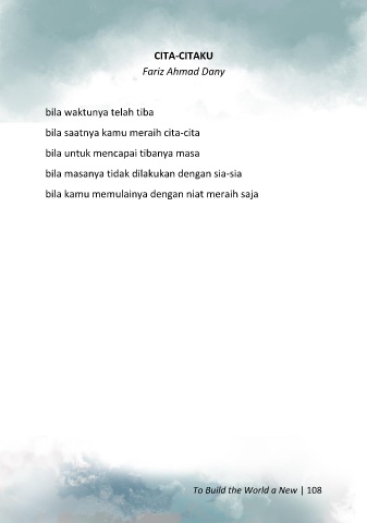 CITA-CITAKU Fariz Ahmad Dany bila waktunya telah tiba bila saatnya kamu meraih cita-cita bila untuk mencapai tibanya masa bila masanya tidak dilakukan dengan sia-sia bila kamu memulainya dengan niat meraih saja To Build the World a New | 108
