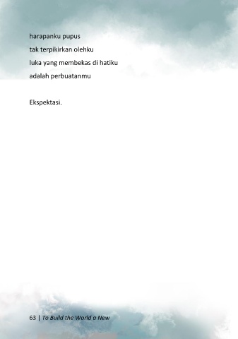 harapanku pupus tak terpikirkan olehku luka yang membekas di hatiku adalah perbuatanmu Ekspektasi. 63 | To Build the World a New