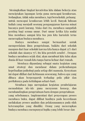 bacanya pasti kurang. Maka dari itu, membaca sangatlah