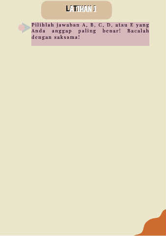 LATIHAN I LATIHAN I P i l i h l a h j a w a b a n A , B , C , D , a t a u E y a n g A n d a a n g g a p p a l i n g b e n a r ! B a c a l a h d e n g a n s a k s a m a !