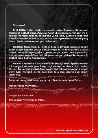 Harian El Bethel bulan Agustus telah di release. Renungan ini di