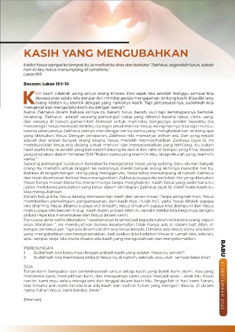 justru membawa perubahan yang besar dalam kehidupan Zakheus (ayat 8). Inilah bukti kasih itu