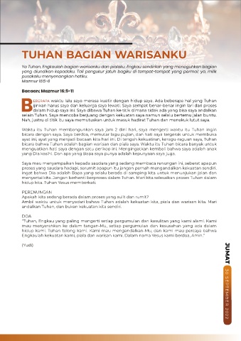 bicara bahwa Tuhan adalah bagian warisan dan piala saya. Waktu itu Tuhan bicara banyak untuk