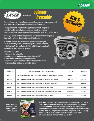 45025 PRO Nikasil CYLINDER KIT "POP-UP" FITS MS261 (44.7MM) $125.40 $75.20