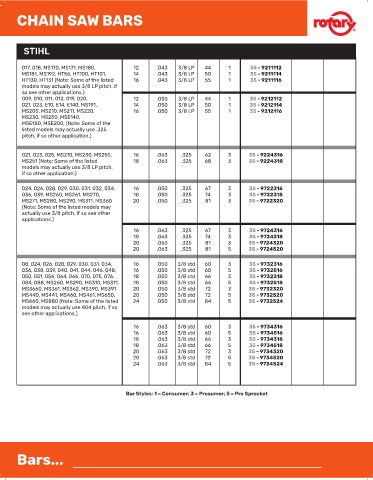 MS660, MS880 (Note: Some of the listed 24 .050 3/8 std 84 5 35 - 9732524