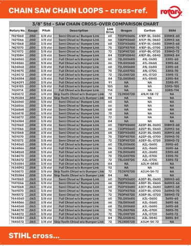 3/8" Std - SAW CHAIN CROSS-OVER COMPARISON CHART