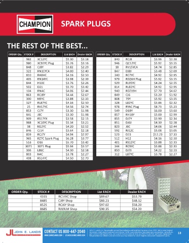 ORDER Qty. STOCK # DESCRIPTION List EACH Dealer EACH