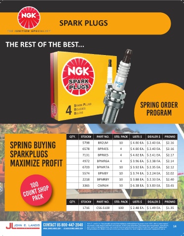 SPARKPLUGS 7131 BPR6ES 4 $ 4.02 EA. $ 2.41 EA. $2.17
