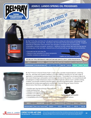 2025 BEL-RAY TOTAL PERFORMANCE LUBRICANTS BAR AND CHAIN OIL JOHN E. LANDIS DEALER PRICING