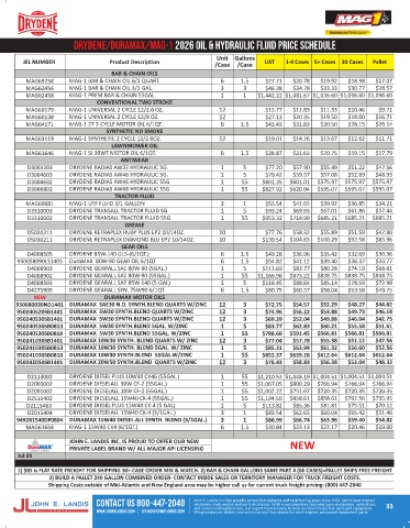 Drydene/DuraMax/Mag-1 2026 Oil & Hydraulic Fluid Price Schedule