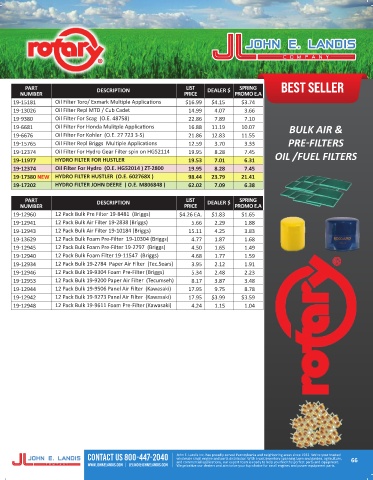19-15765 Oil Filter Repl Briggs Multiple Applications 12.59 3.70 3.33 PRE-FILTERS