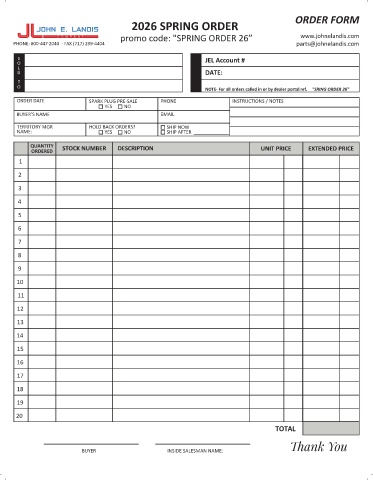 promo code: "SPRING ORDER 26” www.johnelandis.com