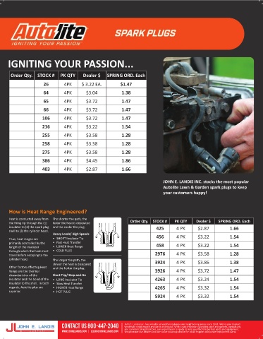 the firing tip through the (1) faster the heat is dissipated Order Qty. STOCK # PK QTY Dealer $ SPRING ORD. Each