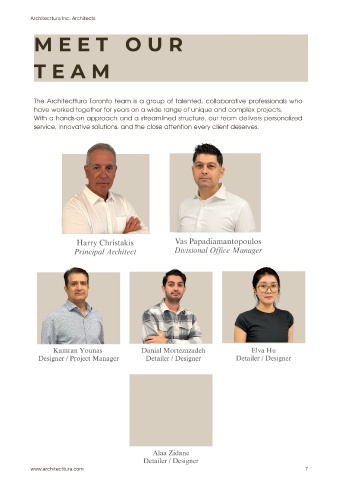 The Architecttura Toronto team is a group of talented, collaborative professionals who