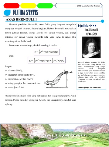 p= tekanan (N/m ), hidrodinamika, yaitu Hukum Bernoulli.