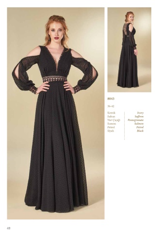 8043 36-42 Kemik Ivory Safran Saffron Nar Çiçeği Pomegranate Somon Salmon Petrol Petrol Siyah Black 8076 38-46 Kemik Ivory Küf Yeşili Mold Green Kırmızı Red Siyah Black 48 49
