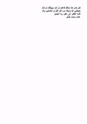 فإن كان هذا َحالُك فاعلم أ َّن الله سيُبلغُك ُمرآدك. (جعلني الله وإياك من أهل القرآن العاملين به) كتبه الفقير إلى عفو ربه الجليل عادل محمد خليل