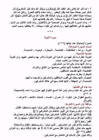 التوبة  -براءة  -ال ُمق ْش ِقشة  -الفاضحة  -ال ُمبع ِثرة  -البحوث  -ال ُمد ْم ِدمة.